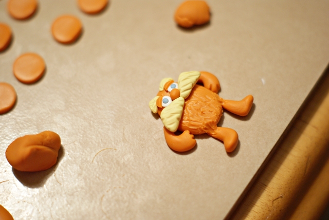 So when I was done making the first one and happy with how he turned out, I made lots of pieces and parts for to make an army of Lorax. Now it was time to assemble them.